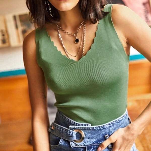 Κομψό αμάνικο τοπ σε διάφορες αποχρώσεις με λεπτή ribbed ύφανση, που προσφέρει διακριτική λάμψη.