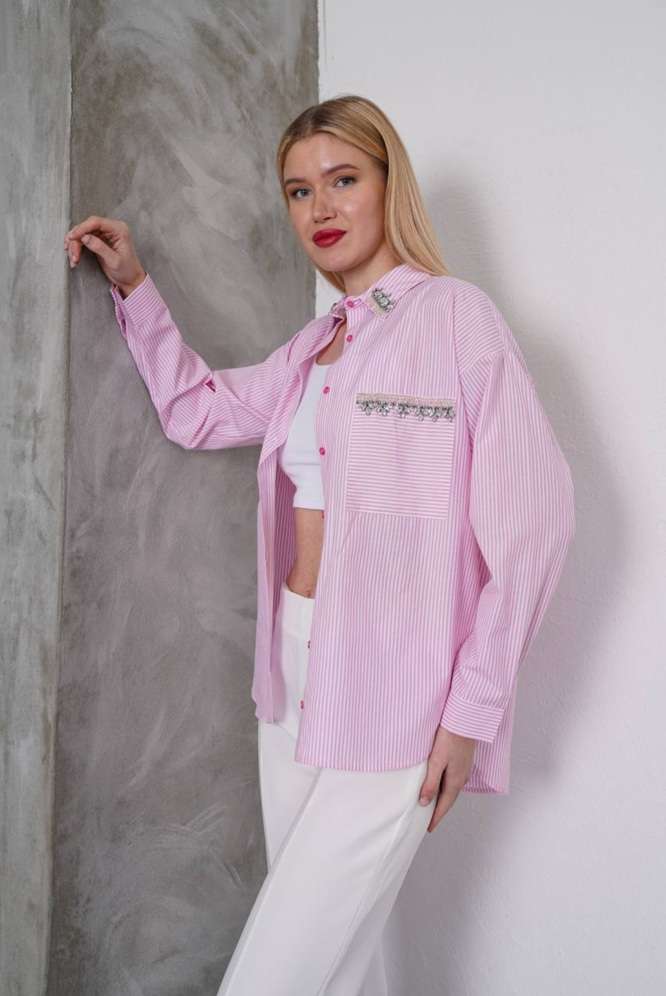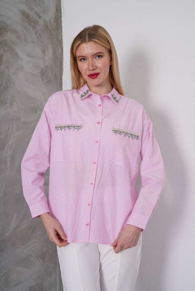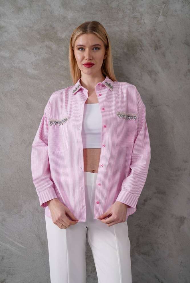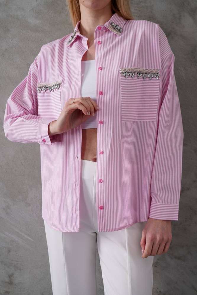 Ριγέ Πουκάμισο Shine με Strass